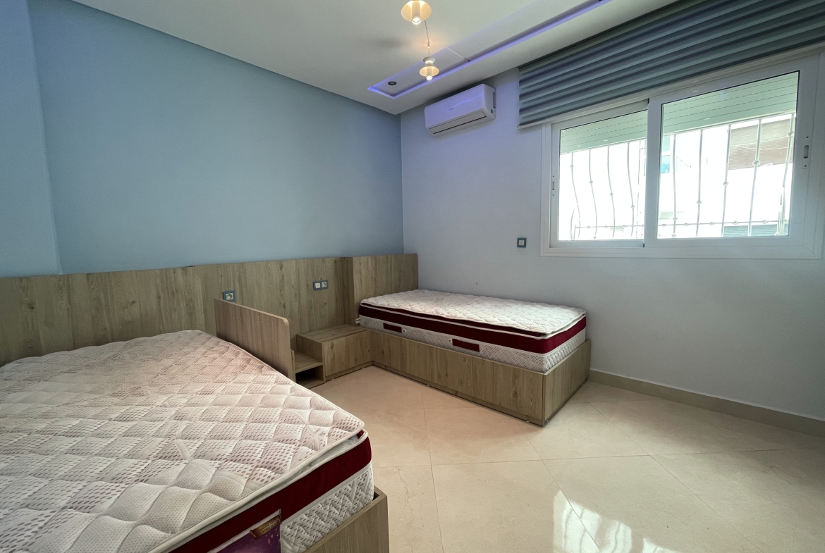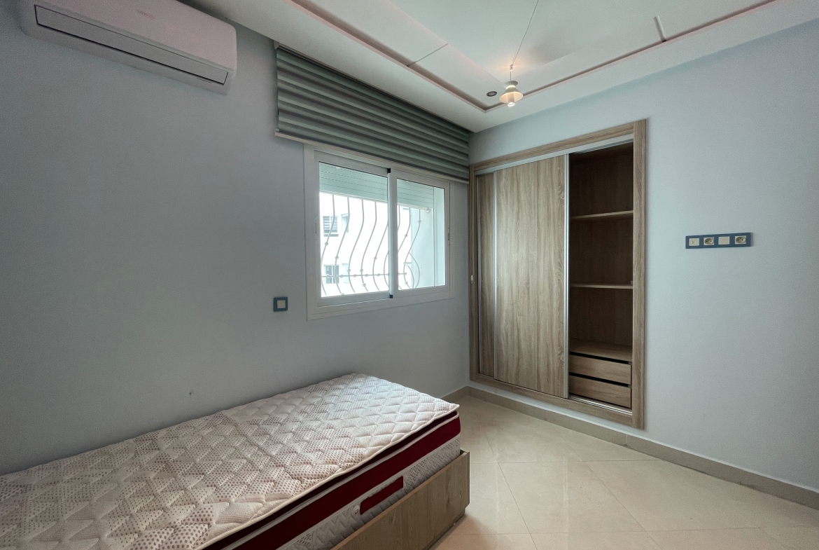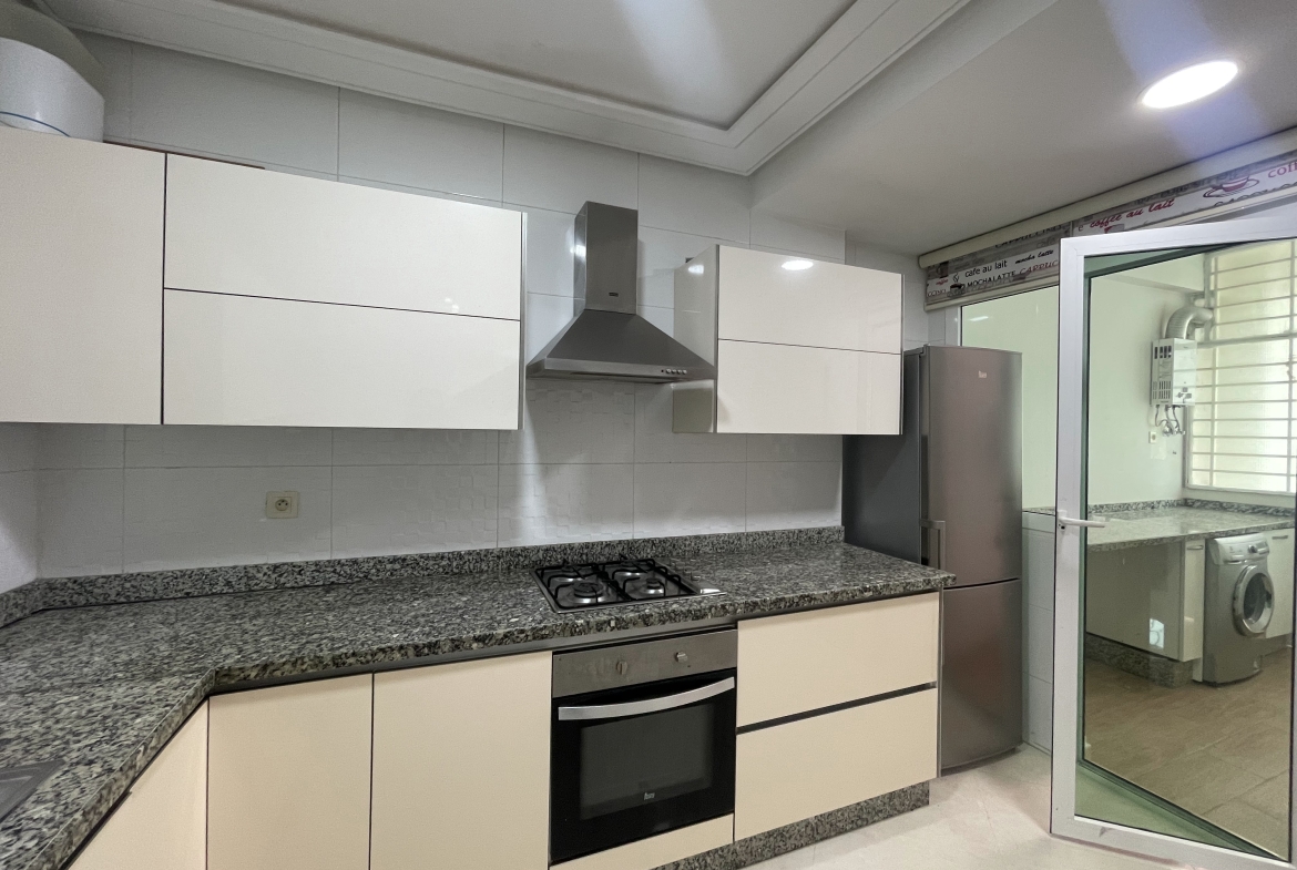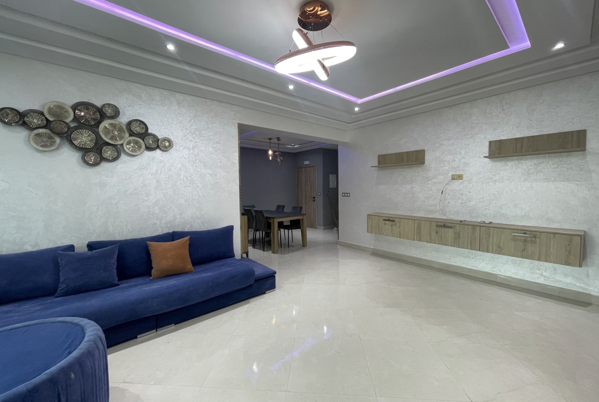 Century 21 Tanger vous propose à la location meublée sur une longue durée un appartement très bien situé en plein centre-ville à place mozart. L’appartement est d’une superficie de 90m2, se compose d’un salon, 2 chambres à coucher, une cuisine avec buanderie, et une salle de bain.