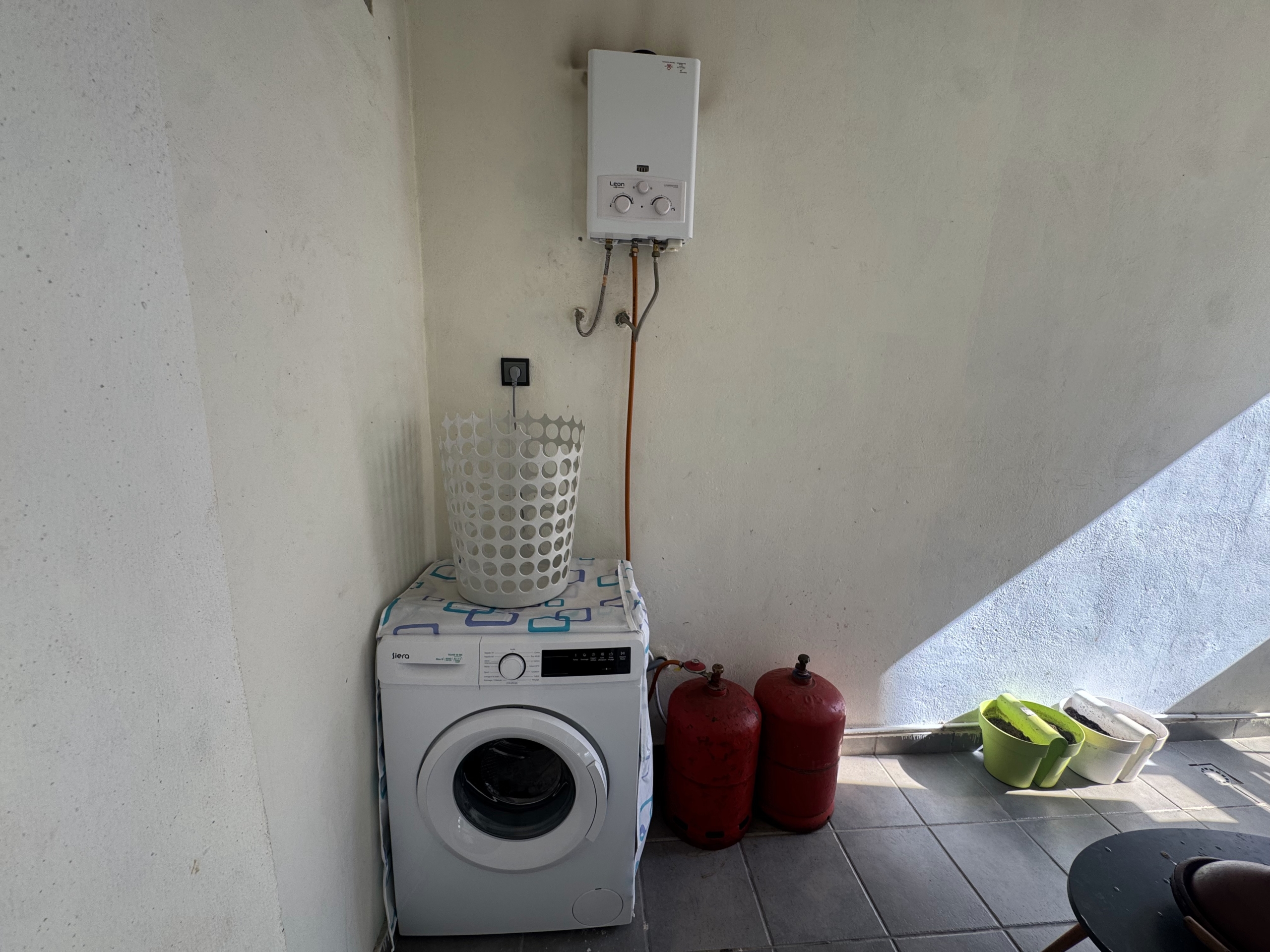 Il se compose d’un salon, de 3 chambres, un balcon, d’une cuisine avec buanderie, d’une salle de bain et de WC.