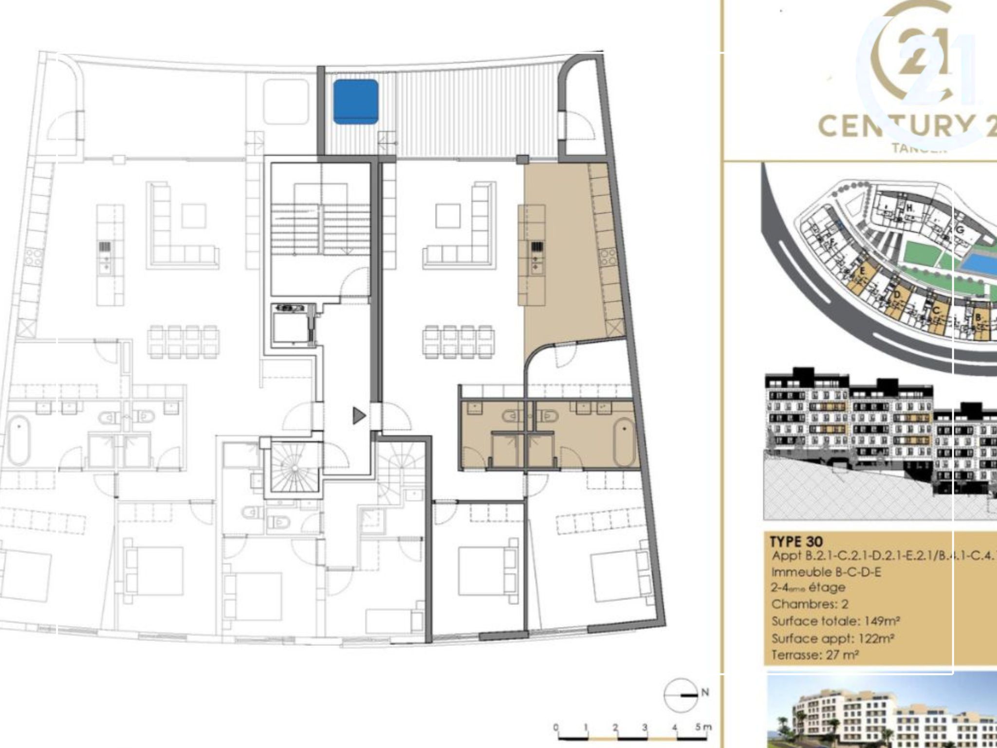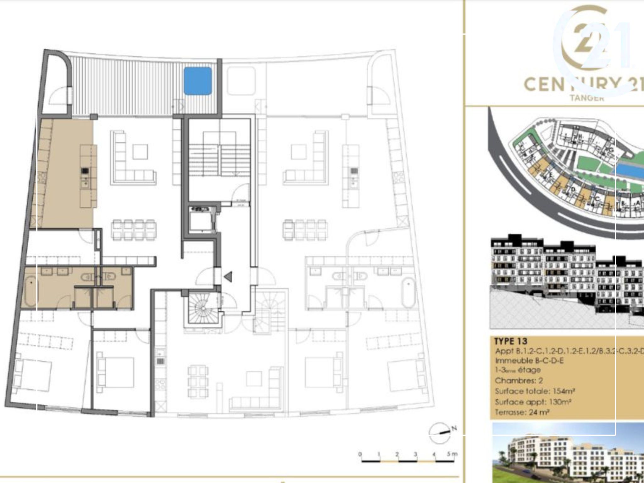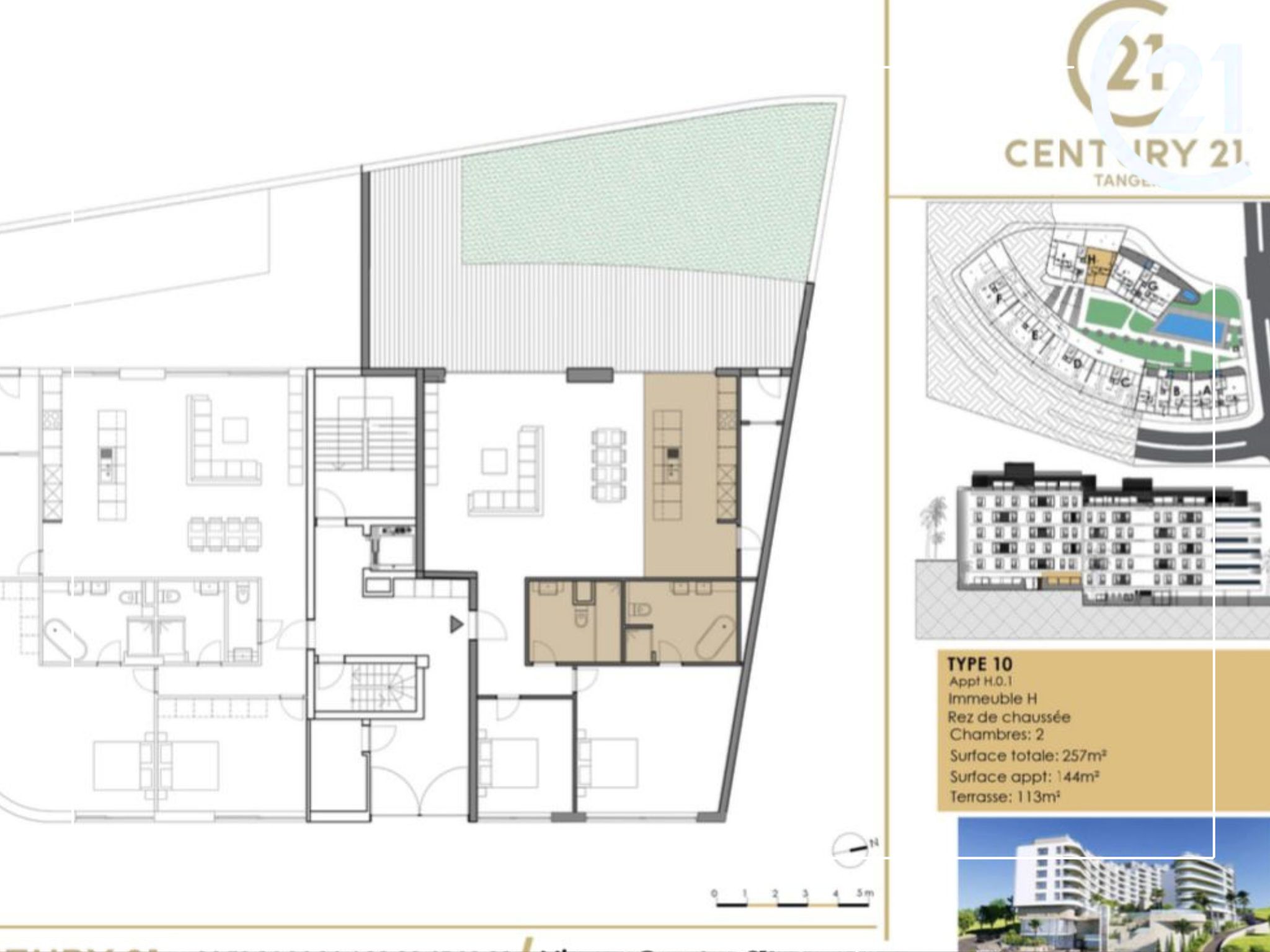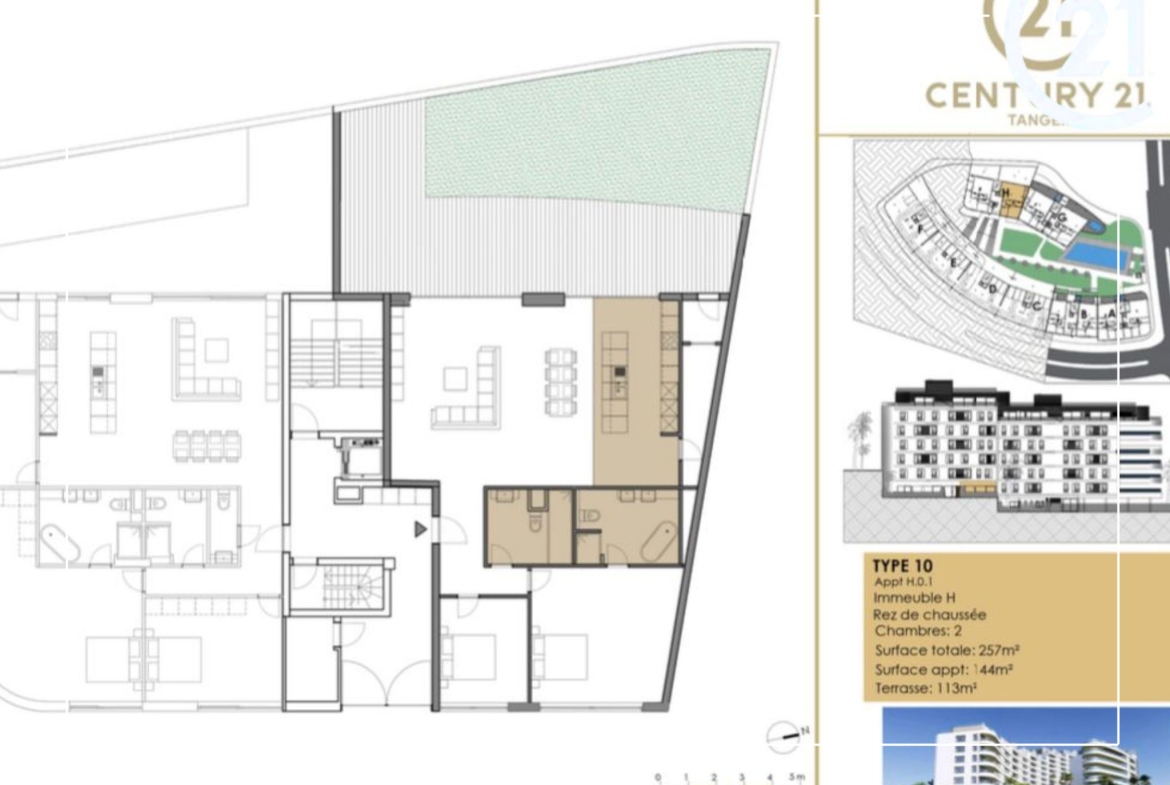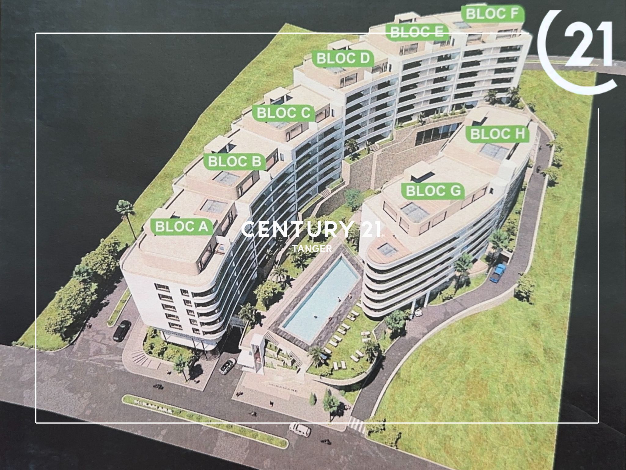 Century 21 Tanger vous présente en exclusivité Miramar Résidence, un projet immobilier d’exception idéalement situé au cœur du prestigieux quartier Malabata Hills à Tanger. Alliant élégance contemporaine, confort absolu et prestations de haut standing, cette résidence fermée et sécurisée redéfinit les standards du luxe résidentiel.