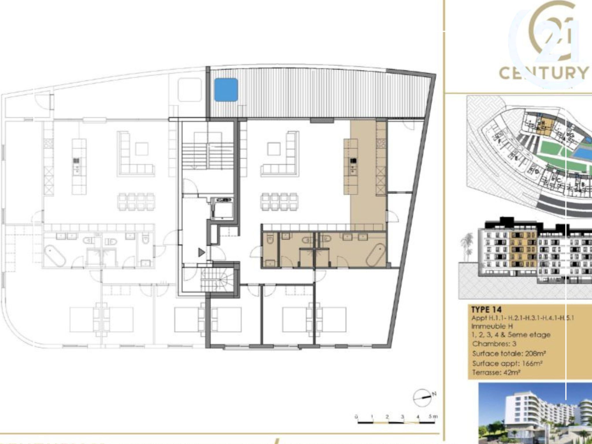 Bloc H : appartements de 195 m² (1er, 2e et 3e étages), 208 m² (1er et 2e étages), ainsi que 228 m² et 257 m² en rez-de-chaussée