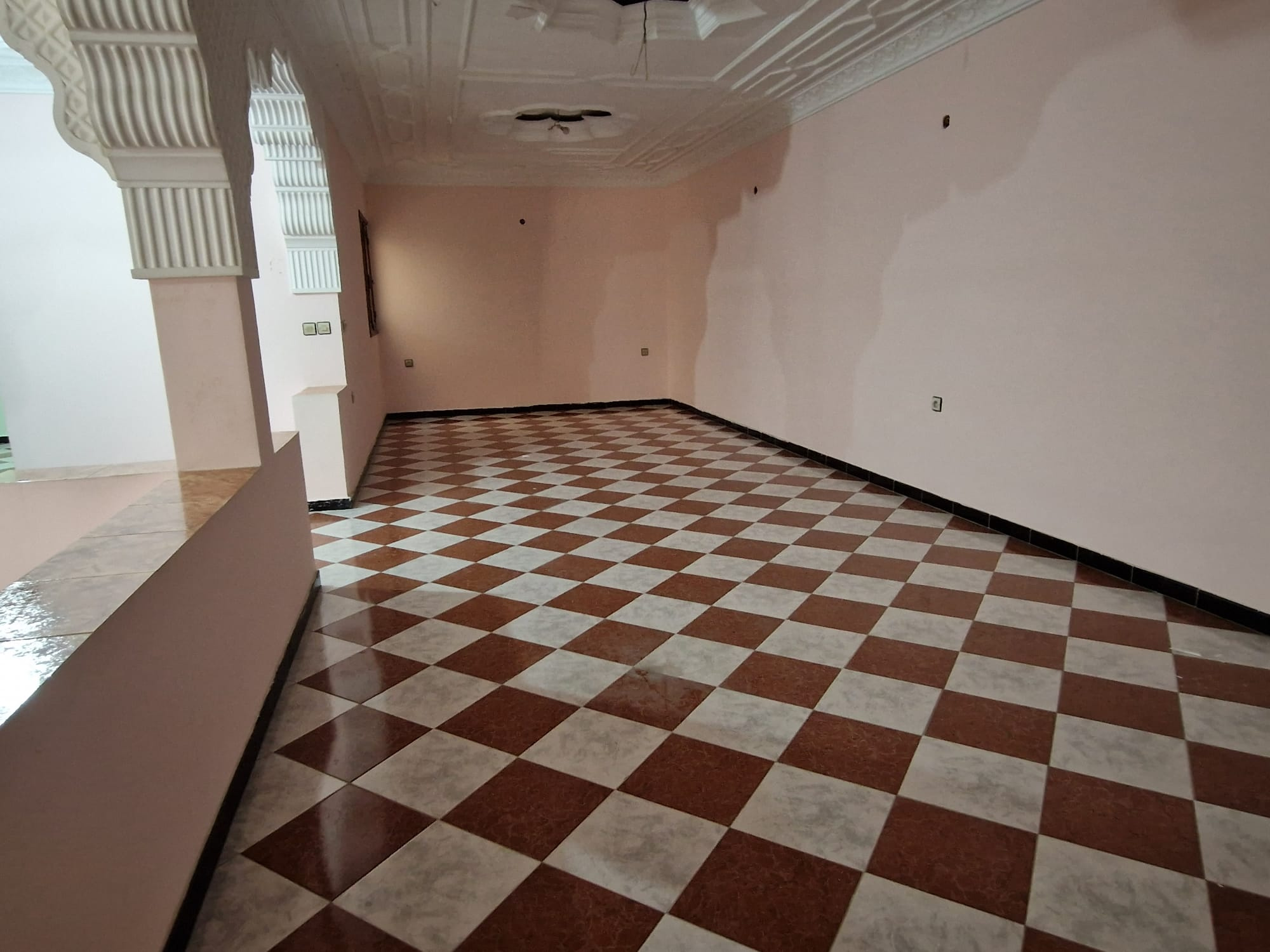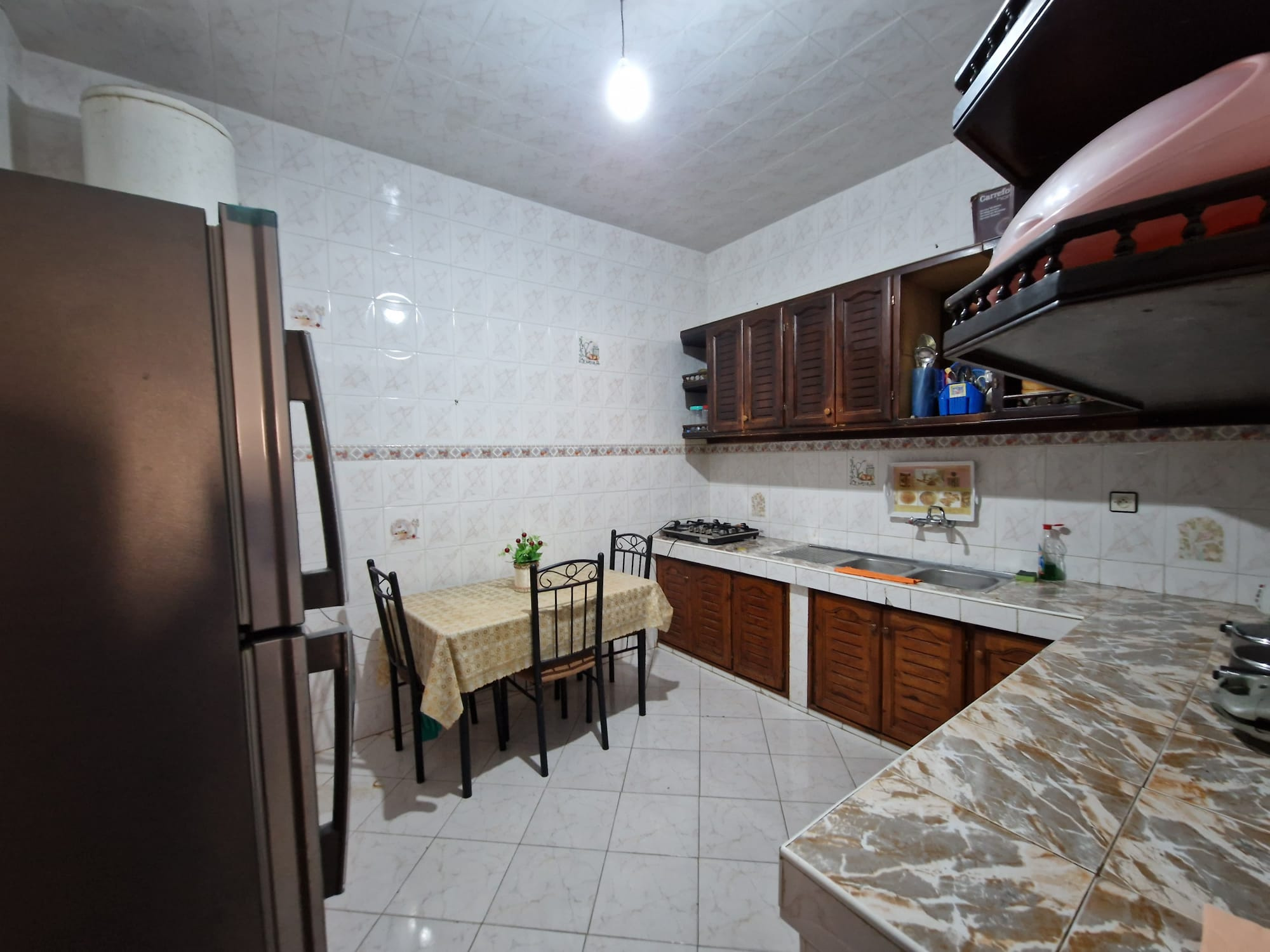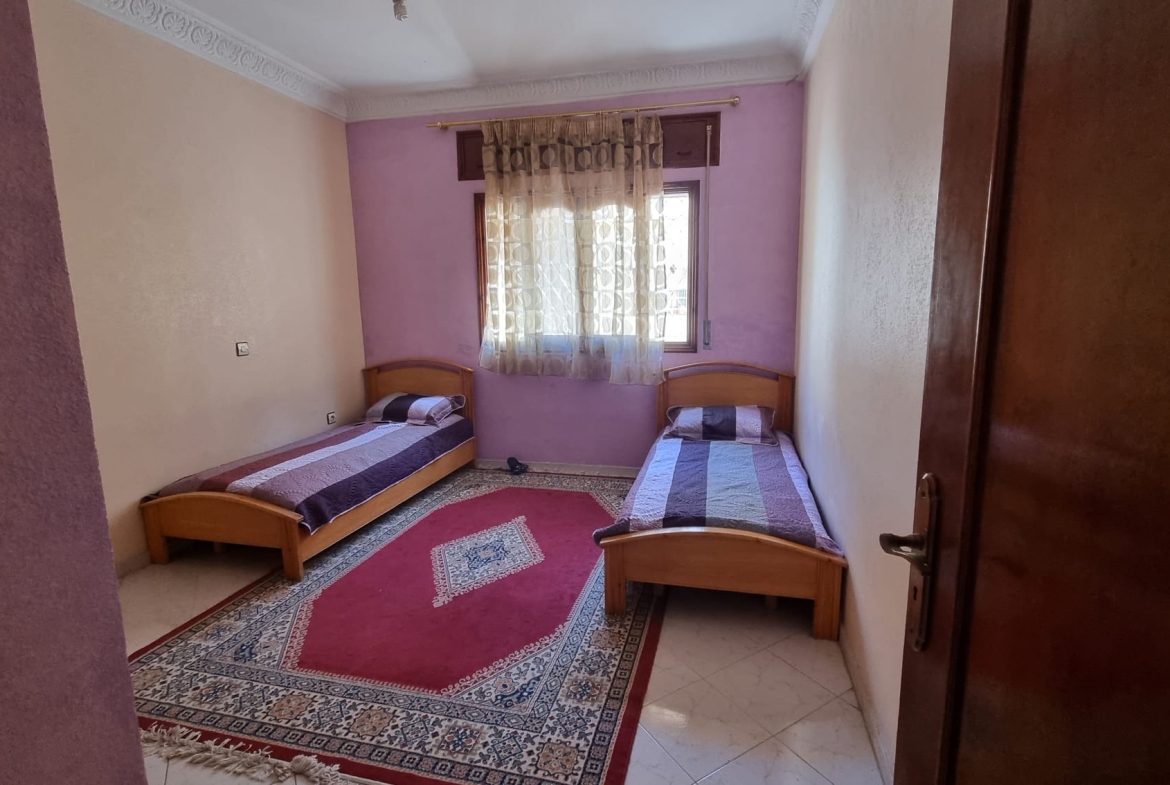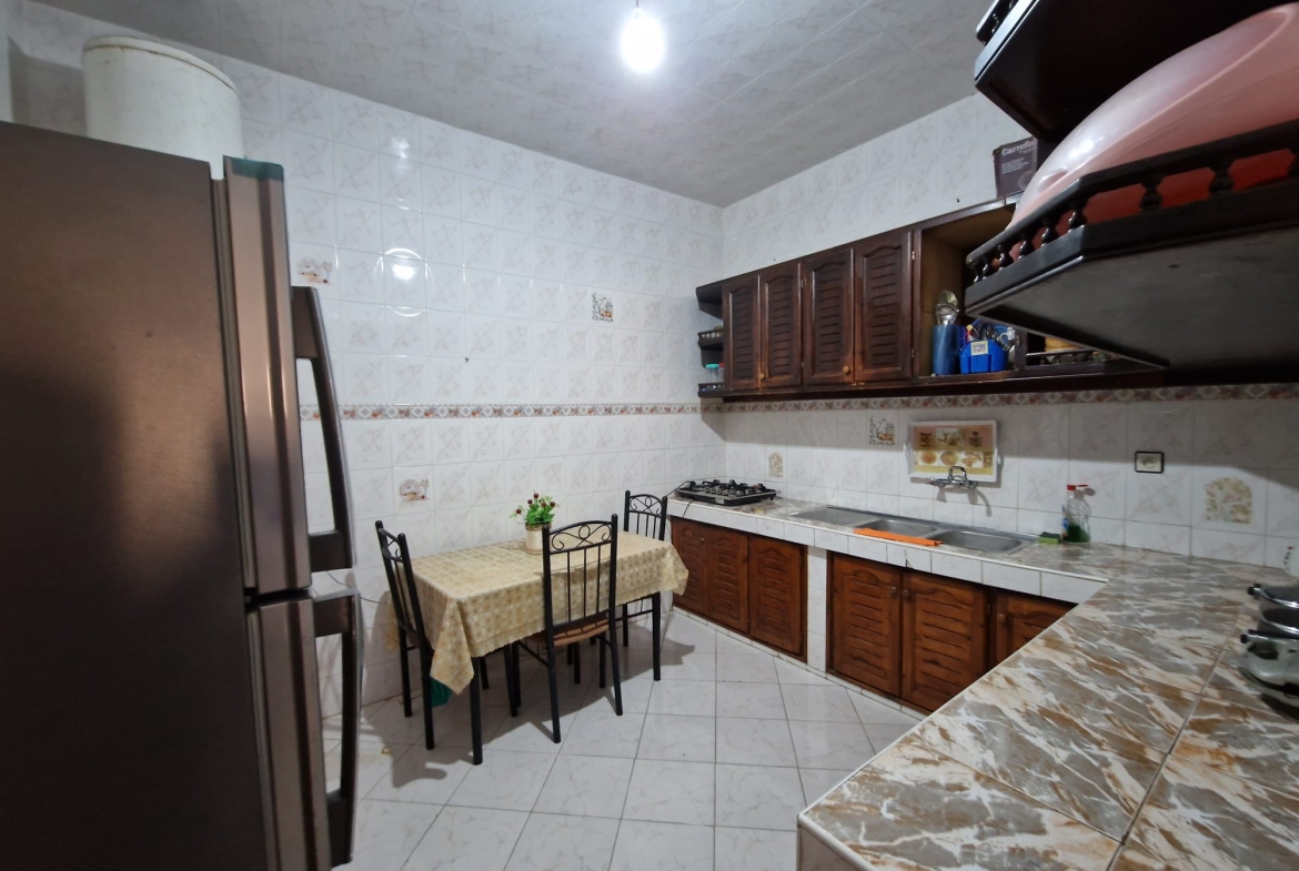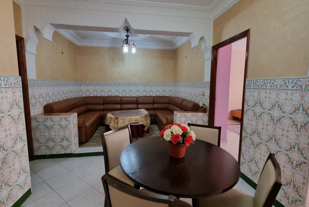 Une grande maison de 123 m² dans un quartier calme (EZZAOUDIA) à vendre.la maison est composée de 2 étages, retrait et un garage. Le premier étage contient : 2 salons, salle à manger, cuisine, salle de bain et une petite terrasse. Le deuxième étage dispose d’un grand salon, une chambre et une salle de bain, et le retrait : 2 salons, salle à manger, cuisine et salle d’eau. La maison dispose de son propre garage privatif.