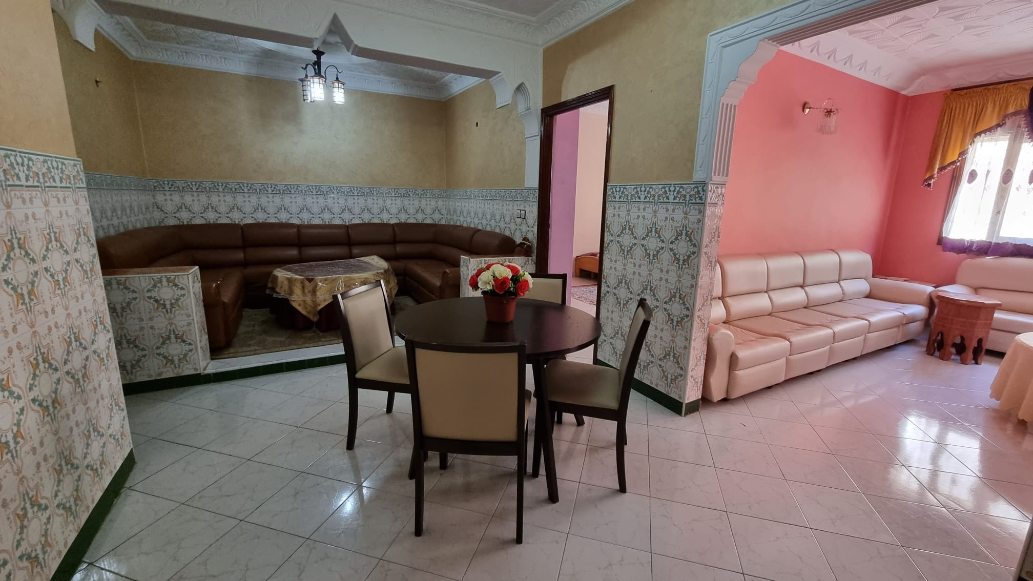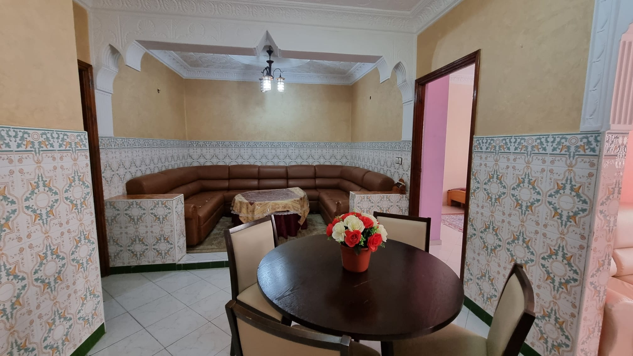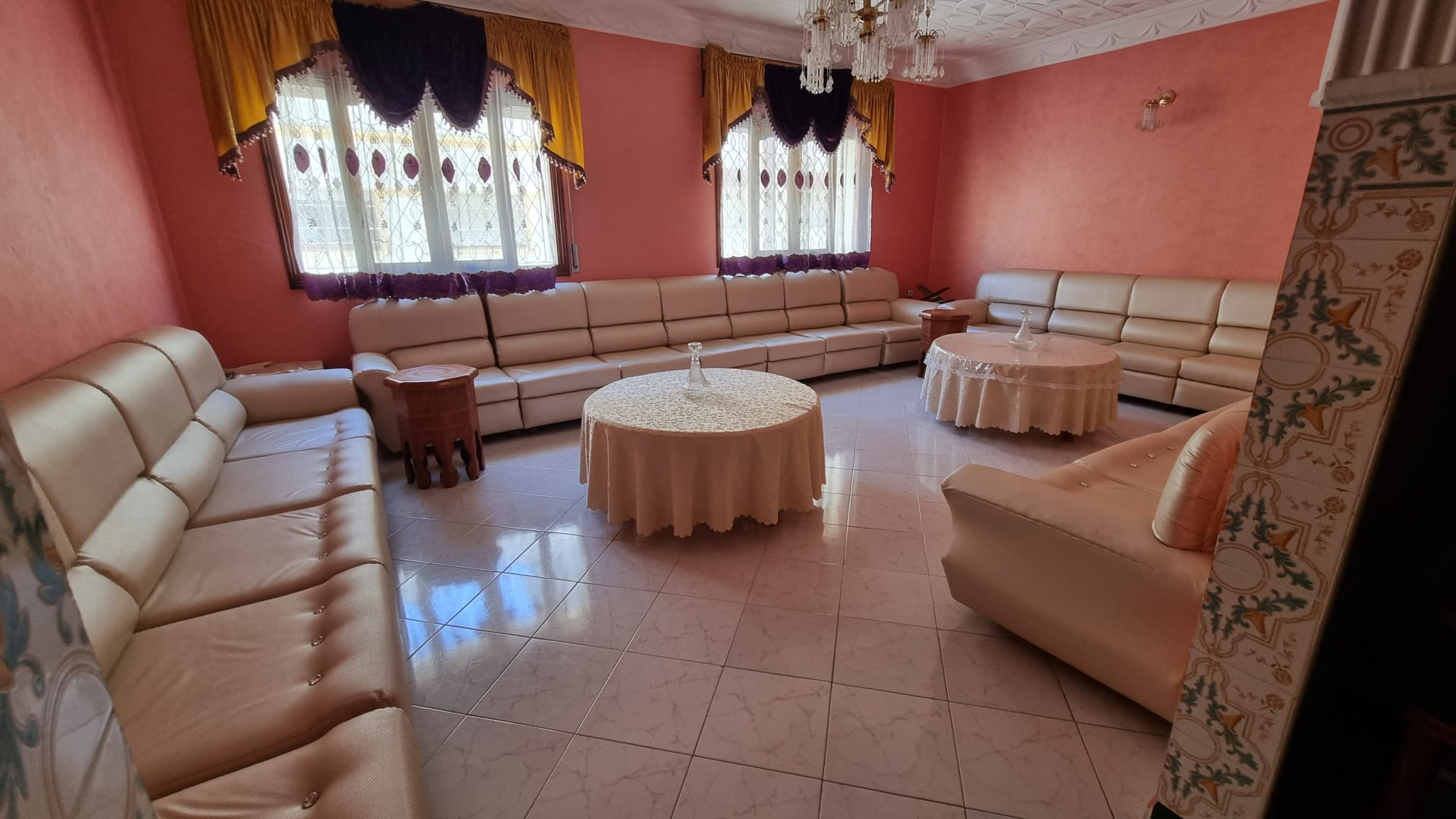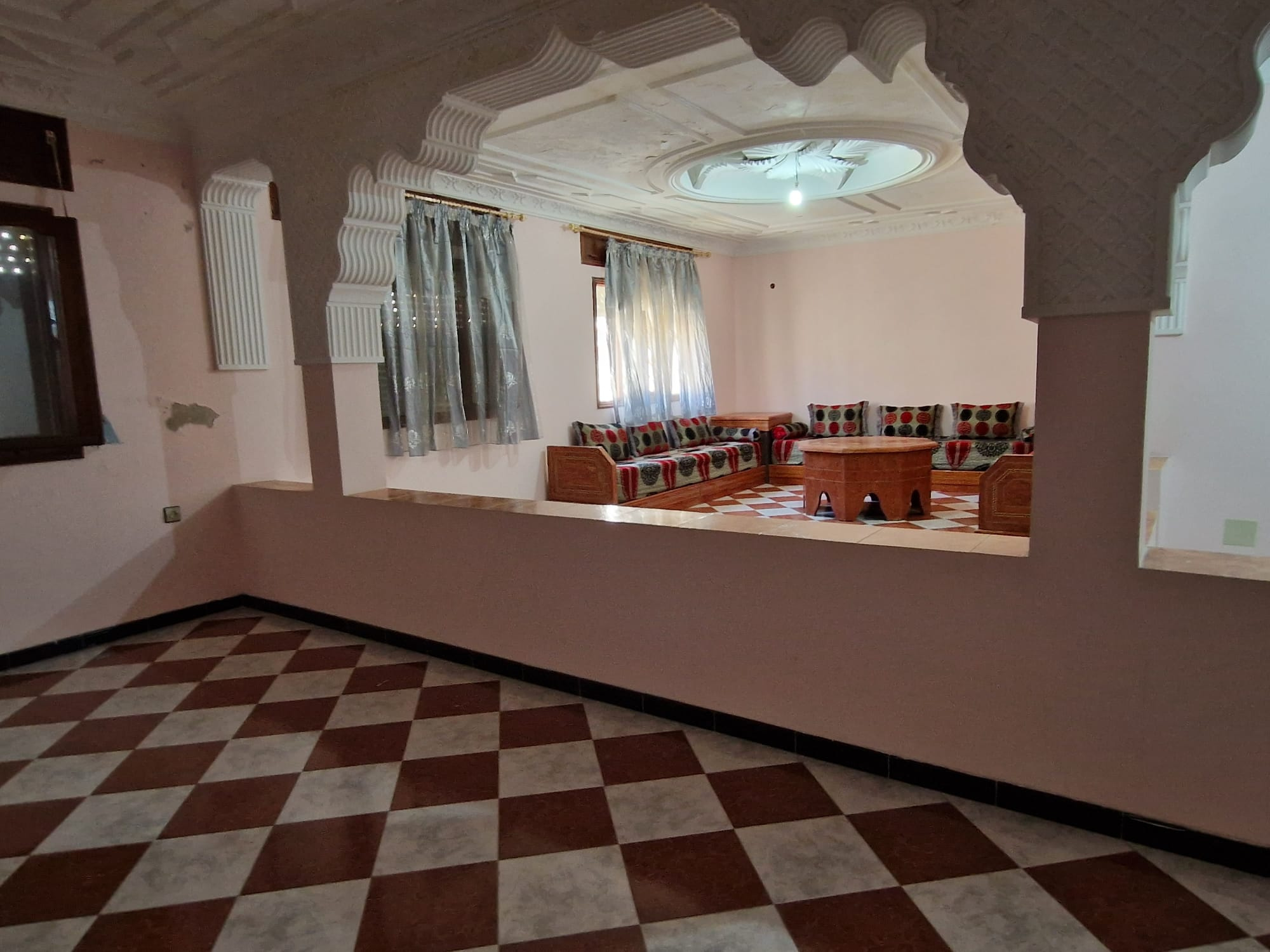 Une grande maison de 123 m² dans un quartier calme (EZZAOUDIA) à vendre.la maison est composée de 2 étages, retrait et un garage. Le premier étage contient : 2 salons, salle à manger, cuisine, salle de bain et une petite terrasse. Le deuxième étage dispose d’un grand salon, une chambre et une salle de bain, et le retrait : 2 salons, salle à manger, cuisine et salle d’eau. La maison dispose de son propre garage privatif.