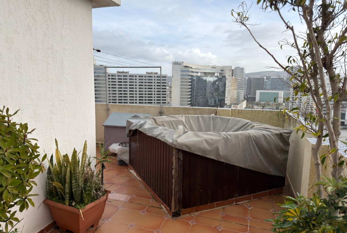 CENTURY 21 Tanger vous propose à la vente un magnifique appartement de 153 m², dont 53 m² de terrasse, situé au 13? étage d’un immeuble de standing bénéficiant d’un emplacement exceptionnelen face de la gare TGV et à seulement 5 minutes à pied de la corniche.